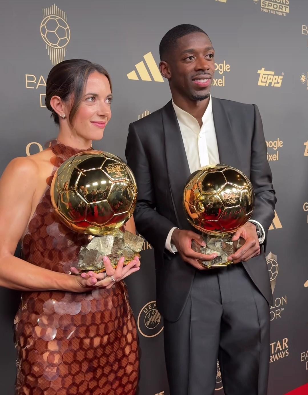 Dembélé y Aitana Bonmatí, los grandes ganadores del Balón de Oro 2025, edición llevada a cabo en el Teatro del Chatelet de París. Foto: Captura de pantalla