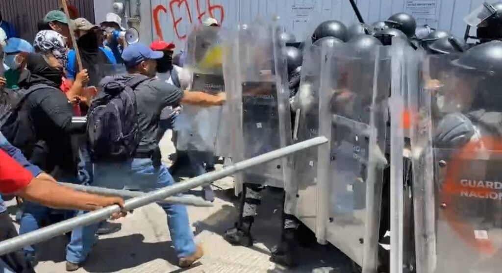 De acuerdo con diversas televisoras y agencias, similar beligerancia la mostró también el magisterio de Guerrero en la capital del país, donde arremetió contra la sede de la Secretaría de Gobernación y antes fue en Palacio Nacional y también la sede del SNTE; a ellos se refirió la presidenta Claudia Sheinbaum en la conferencia mañanera del jueves 5, cuando aludió a un grupo que parecía andar provocando la represión. “No caemos en provocaciones”, aseveró.