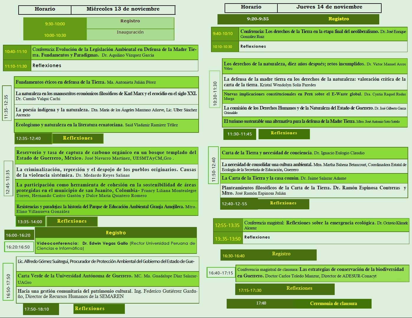 Por la tarde se realizará una videoconferencia con el rector de la Universidad de Ciencias e Informática de Perú. También acompañará el procurador Ambiental de Guerrero; por parte de la UAGro se presentará la Carta Verde. La jornada se cierra con la participación de la Secretaría de Medio Ambiente del gobierno del estado de Guerrero.