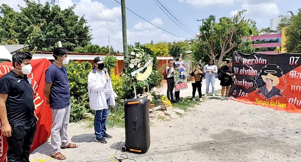 Este domingo, estudiantes de la normal realizaron un mitin en el lugar donde ocurrió el asesinato, con la presencia de la madre de Yanqui Kothan, la señora Lilia Vianey Peralta y otros familiares del occiso, que concluyó con la colocación de una corona de flores.
