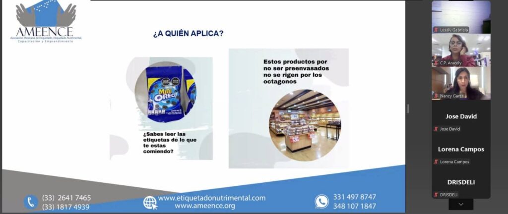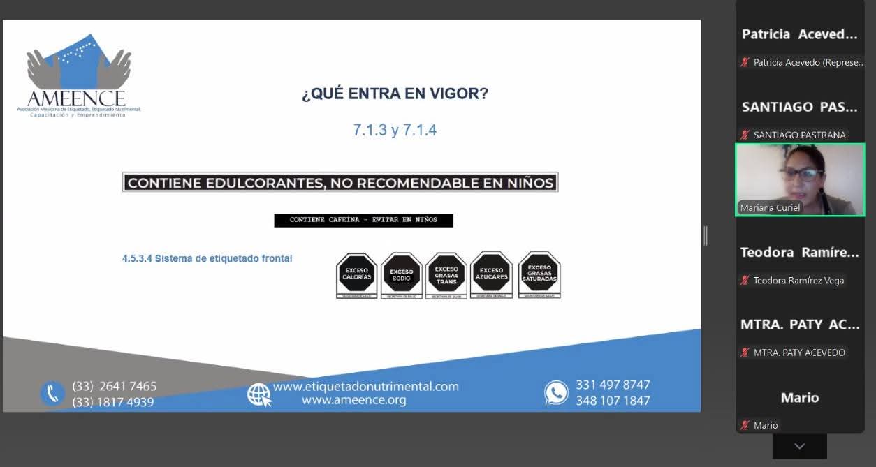 El curso fue impartido por Mariana Curiel, directora general de AMEENCE, quien compartió con las y los asistentes una guía detallada sobre la correcta implementación del etiquetado nutrimental y del etiquetado frontal, conforme a la normatividad establecida por las autoridades sanitarias y comerciales del país.