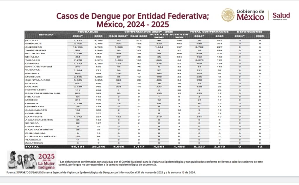 En 2024 el estado registró un total de 61 defunciones a causa del dengue. Aunque en las primeras semanas de 2025 las cifras aún no alcanzan ese nivel, el registro de los primeros 3 fallecimientos generó preocupación entre la población, considerando que en el primer trimestre de 2024 no hubo muertos a causa de esa enfermedad.