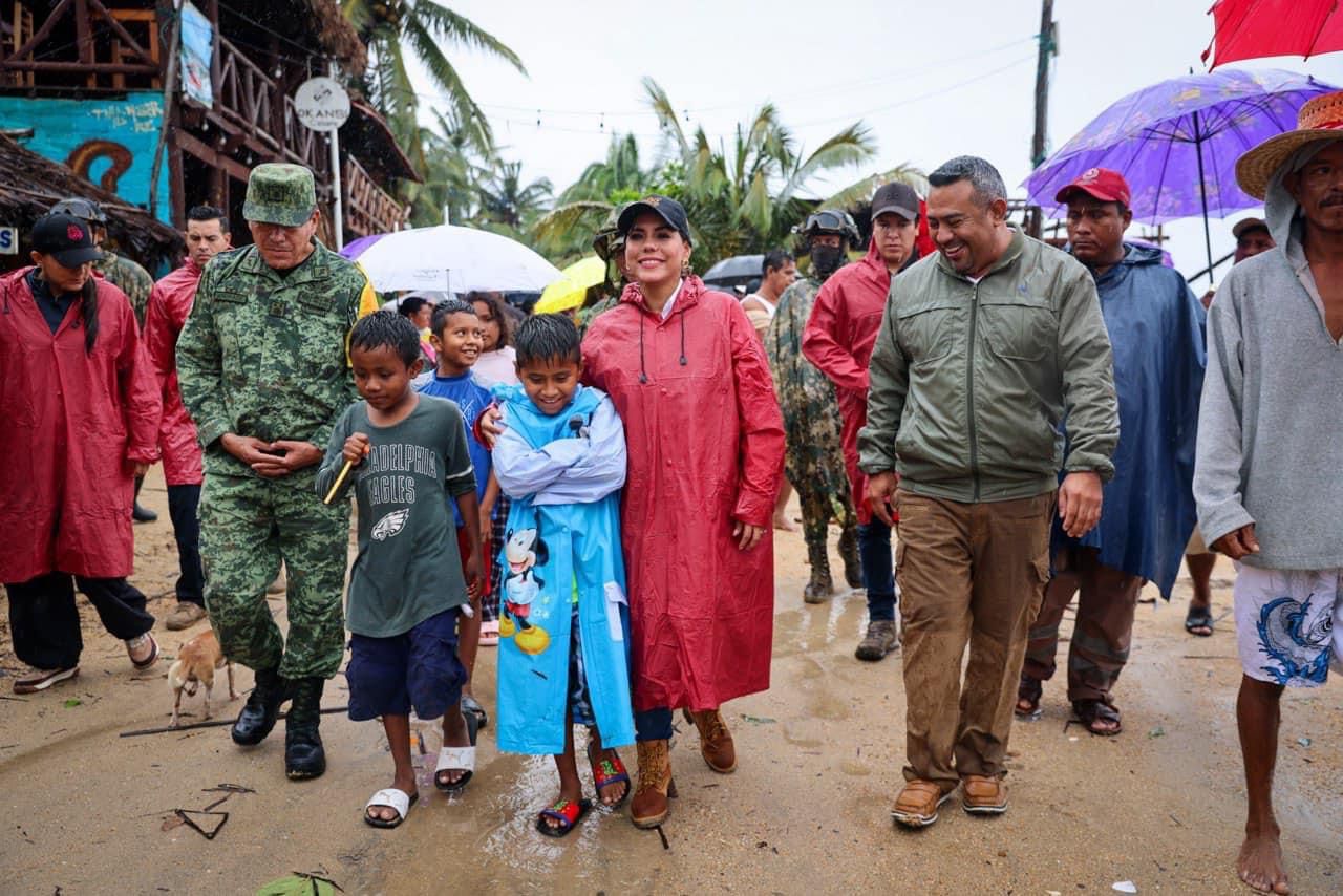 En su visita, la gobernadora sostuvo una reunión con el alcalde de Marquelia, Lincer Casiano Clemente, para conocer el grado de afectación en esta zona, que fue la que recibió el impacto directo del meteoro; más tarde, se trasladaron a la comunidad de Playa Bocana, perteneciente a este mismo municipio, en donde, de acuerdo a una primera evaluación, se registraron daños a enramadas y restaurantes cercanos a la línea costera.