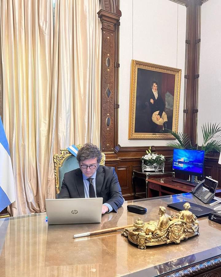 El Presidente de Argentina, Javier Milei, en su primer día de labores. Foto: Javier Milei Fans.