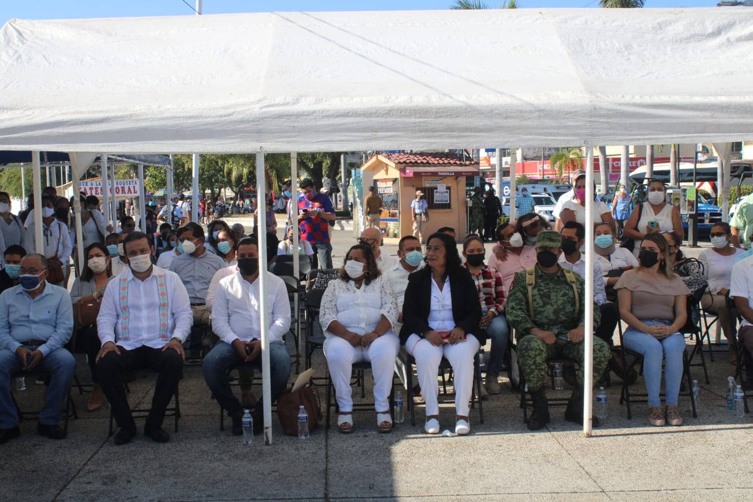 La alcaldesa de Acapulco, Abelina López Rodríguez, realizó un acto cívico, por el 105 aniversario de la promulgación de la Constitución Política de los Estados Unidos Mexicanos, en el malecón del puerto.