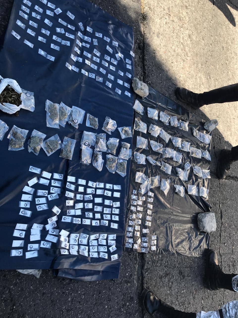 Los detenidos son Luis «N» y Víctor «N»,  a quienes se les solicitó una inspección en una bolsa y una mochila que llevaban, encontrando un total de 52 bolsitas de plástico con hierba seca con las características de la marihuana, 85 más con polvo blanco similar a la cocaína, 33 bolsitas con una sustancia sólida con las características de la droga conocida como piedra, y 70 con una sustancia granulada con las características de la droga llamada cristal.