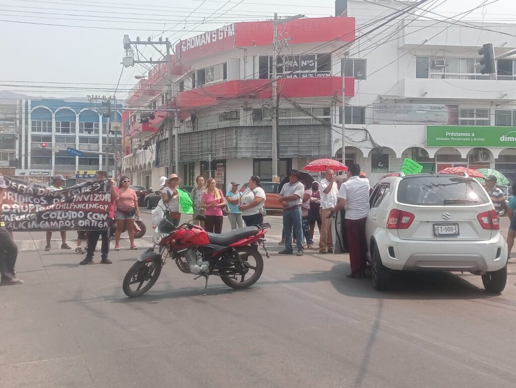 Acompañados en su protesta por la diputada federal, Rosario Merlín, los manifestantes bloquearon la avenida Andrés de Urdaneta y Capitán Malaespina, quienes con pancarta en manos, impidieron la circulación de esas importantes avenidas, que desahogan la carga vehicular que viene desde el Centro de la ciudad.