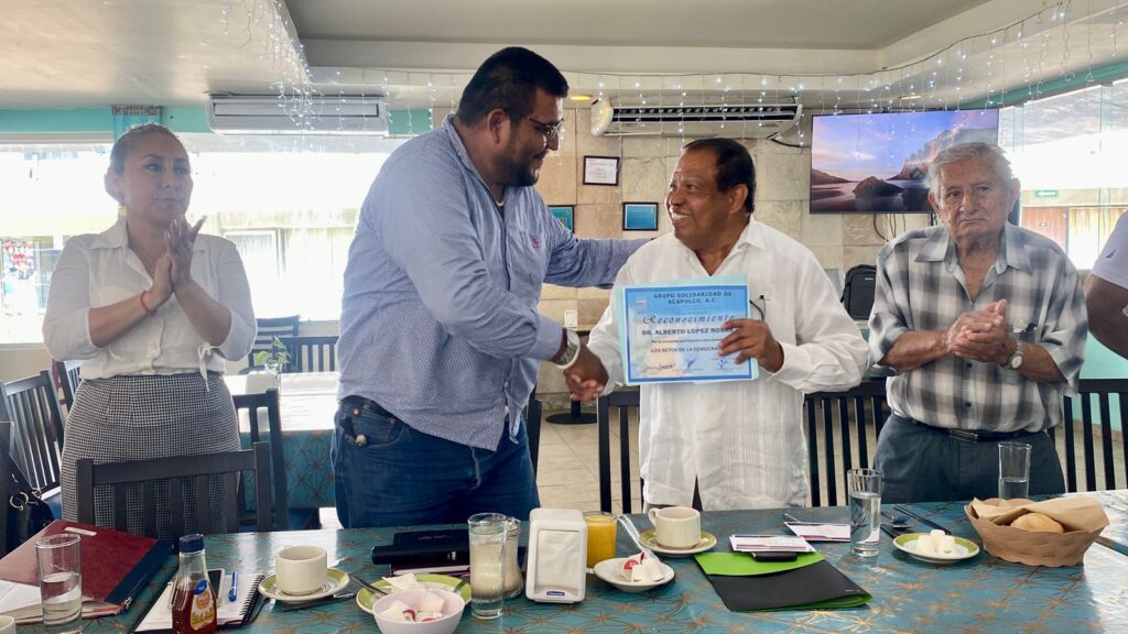 Acapulco, Gro., 18 de enero 2024. Acapulco necesita “una nueva urbanización”, y este es buen momento para emprenderla, apenas superada la emergencia que causó el huracán Otis, esbozó el exalcalde Alberto López Rosas ante unos 50 socios del grupo Solidaridad, integrado por profesionales acapulqueños de diversas especialidades, encabezados por su presidente, Jorge A. Morales Haro.