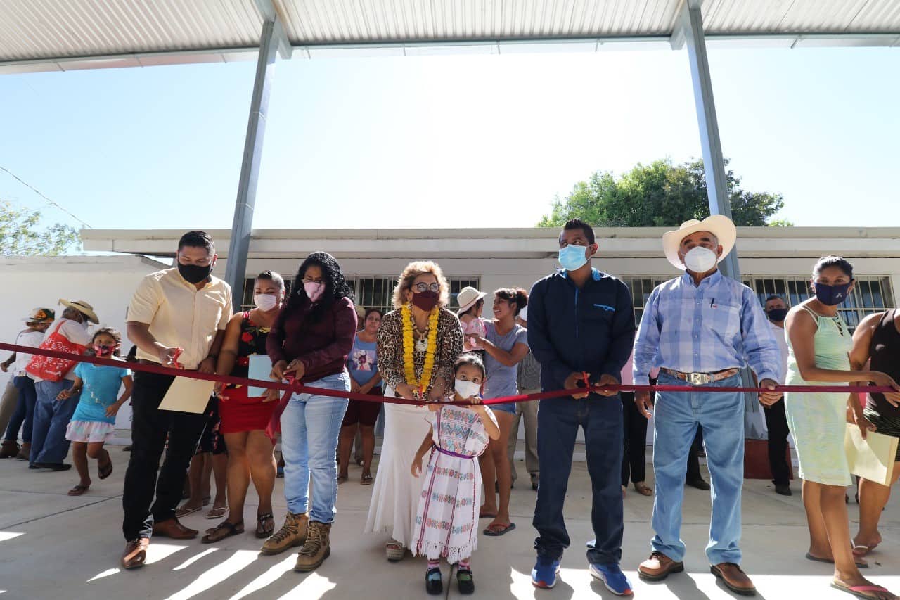 Acapulco, Gro., 21 de noviembre de 2020.- Para dignificar las instituciones educativas y elevar la calidad de vida de los habitantes de los poblados Las Joyas y Texca, la presidenta municipal de Acapulco, Adela Román Ocampo inauguró tres obras de alto impacto social, con una inversión superior a los tres millones 500 mil pesos.