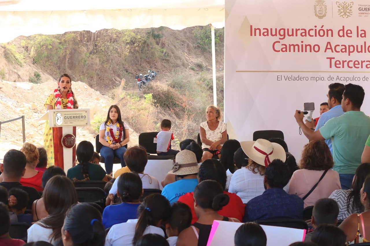 Pie de foto: En marzo, la gobernadora Evelyn Salgado anunciaba que solo faltaba 2.2 kilómetros para unir El Veladero con el municipio; obra gestionada por la diputada Yoloczin Domínguez.