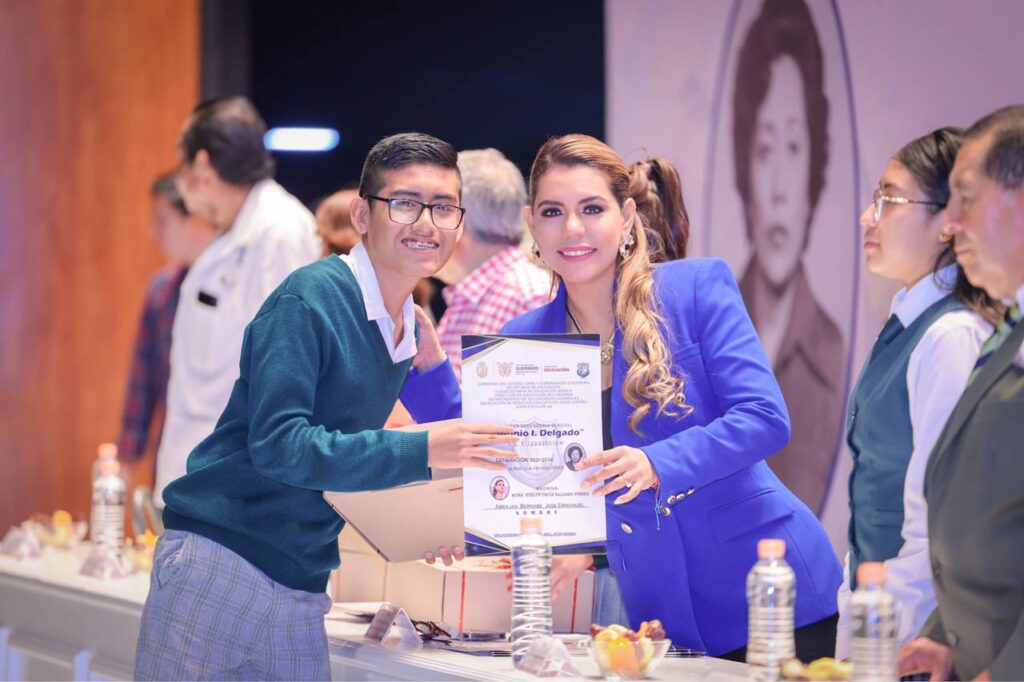 El Auditorio «Sentimientos de la Nación» fue el escenario de este emotivo evento donde la mandataria estatal reiteró que la educación es la mejor herramienta para el desarrollo y bienestar de Guerrero, además de señalar que son los jóvenes son el motor de toda transformación.
