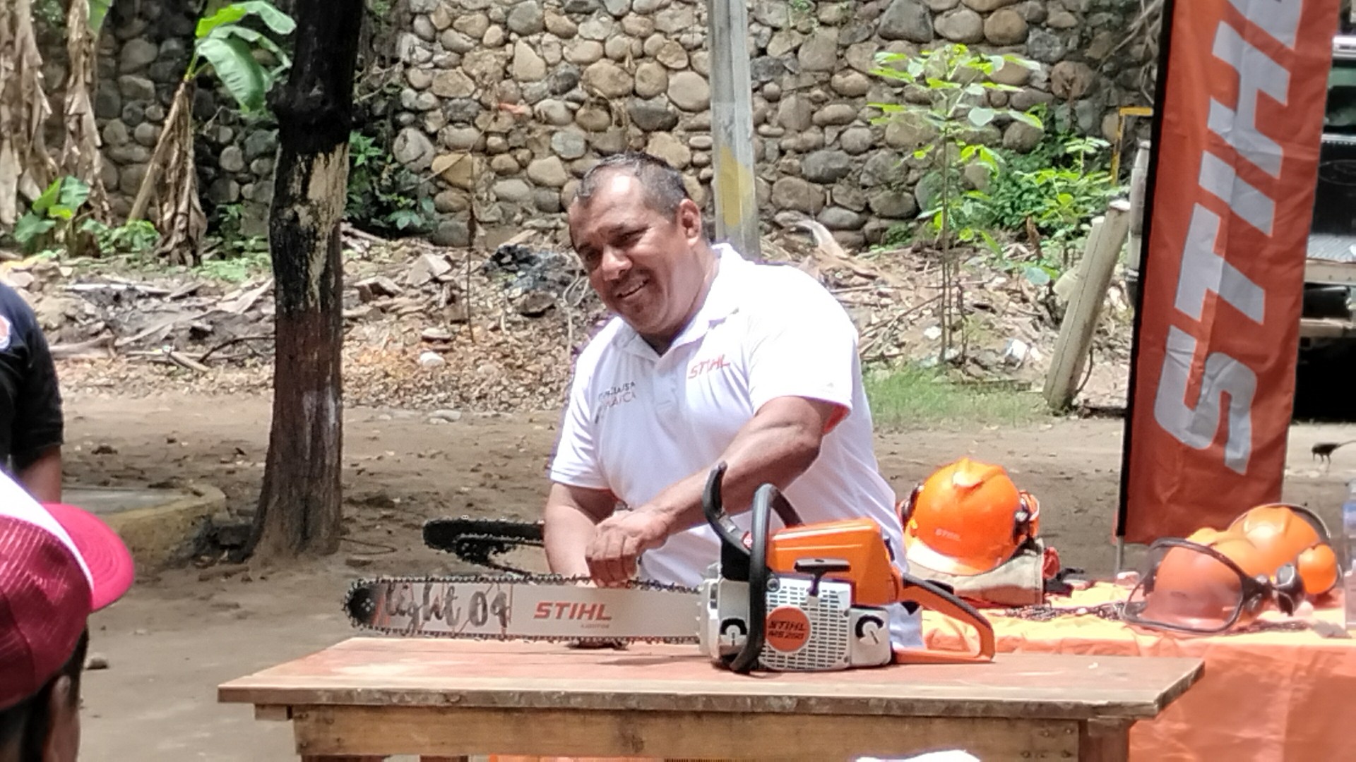 A nombre de la alcaldesa Clara Bello Ríos, el director de Protección Civil municipal César Delgado Nogueda, hizo entrega de un reconocimiento al instructor de la empresa STIHL Mario Manuel Ortega Santos, por su destacada participación en este curso taller.