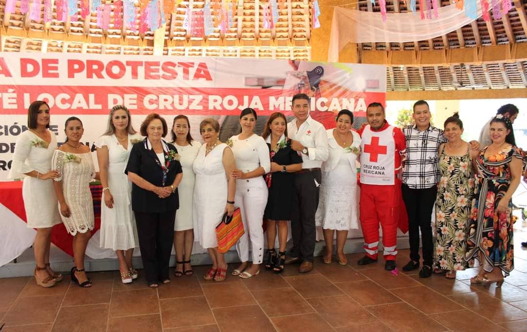 Tecpan, Gro., 25 de abril del 2022. En un acto encabezado por la consejera nacional y delegada estatal de la Cruz Roja en Guerrero, Susana Palazuelos de Winchtendahl, el domingo pasado, la presidenta del sistema DIF municipal tecpaneco, Dulce María Deloya Díaz, juró el cargo de presidenta de la delegación Tecpan.