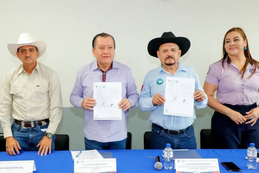 * El representante de este importante sector económico, Alberto Romero Rosas destacó la firma del convenio entre el rector de la UAGro y la Asociación Ganadera Local