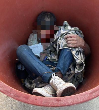 Dicha persona, se encontraba en el interior de un tambo de plástico color café, por lo que procedieron a acordonar la zona.