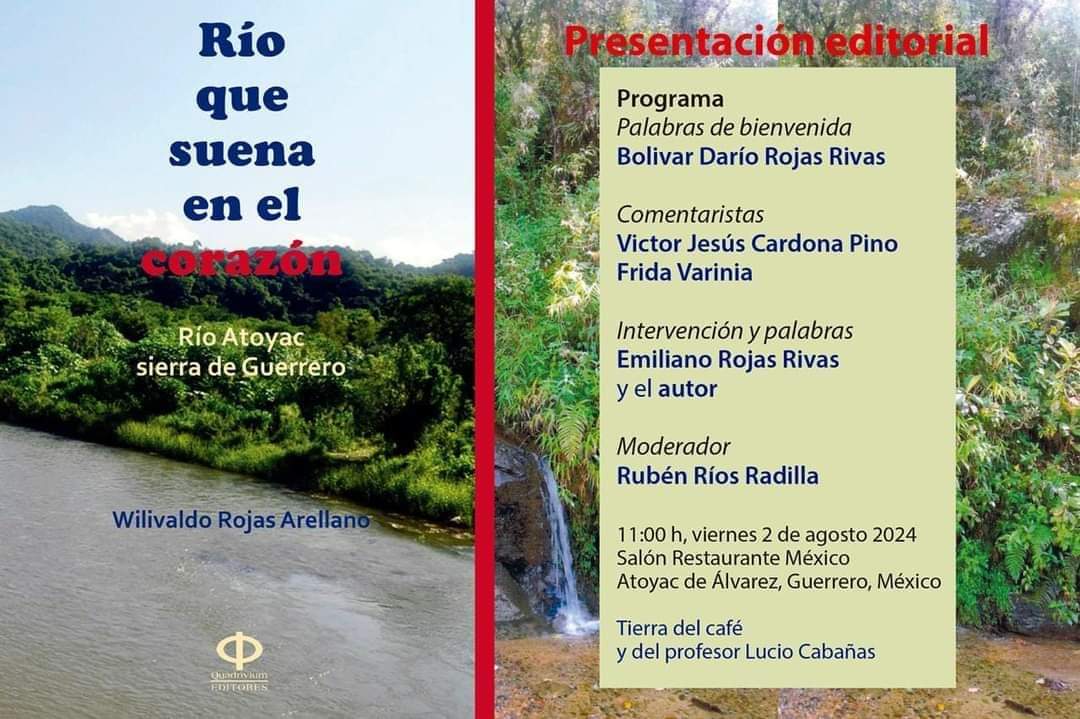 Se presentará el libro «Río que suena en el corazón. Río Atoyac. Sierra de Guerrero», obra del luchador social de izquierda y universitario, Wilivaldo Rojas Arellano.