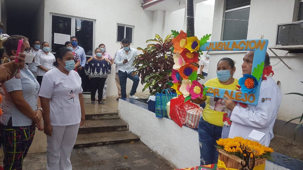 Tecpan de Galeana, Gro; 09 de octubre de 2020.- Acompañado por muchos de sus compañeros de trabajo, así como de sus familiares; este día el doctor Alejo Gutiérrez Segura llegó a sus 30 años de servicios en el hospital básico comunitario y alcanzó su jubilación.