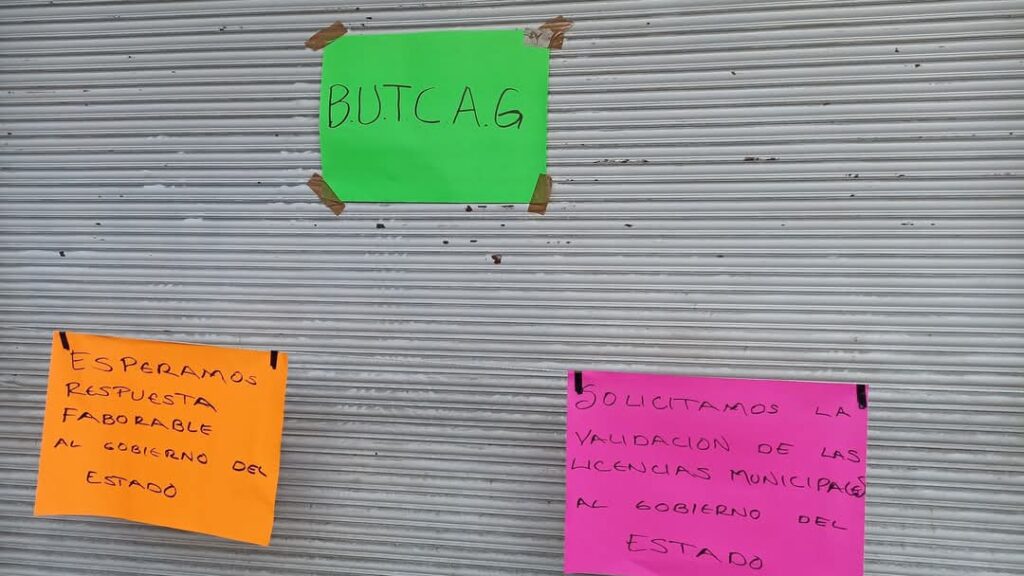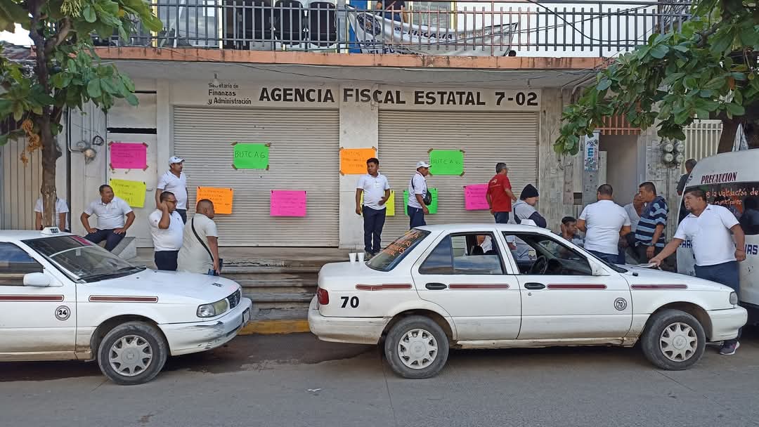 Son integrantes del Bloque Único de Transportistas de #AtoyacDeAlvarez, (BUTCAG), desde este lunes quedaron  cerradas las instalaciones de la agencia fiscal estatal en el municipio, sobre todo exigen la pronta validación de licencias que les dio personal de Tránsito municipal.
