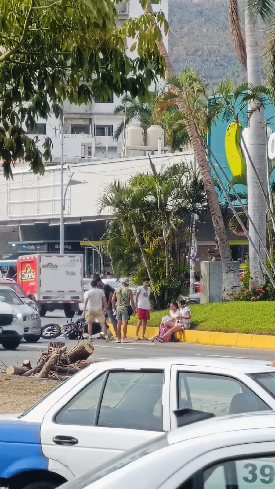 Derrapa motociclista con acompañante, al ser impactado por un vehículo, en la glorieta del fraccionamiento Costa Azul, frente al centro acuático CICI, en Acapulco, Guerrero.