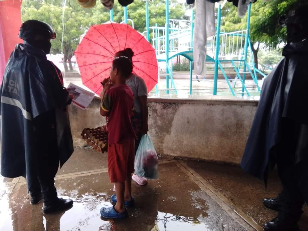 A  las tres de la tardé, que comenzó la lluvia en el Centro, de la ciudad e.n la  calle Montes de Oca  los elementos de protección civil municipal  dirigido por Cesar Delgado Nogueda