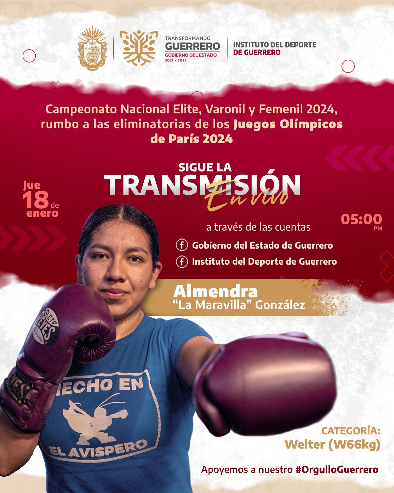 La pugilista de Guerrero, Almendra “Maravilla” González, por su pase a los juegos para olímpicos #París2024
