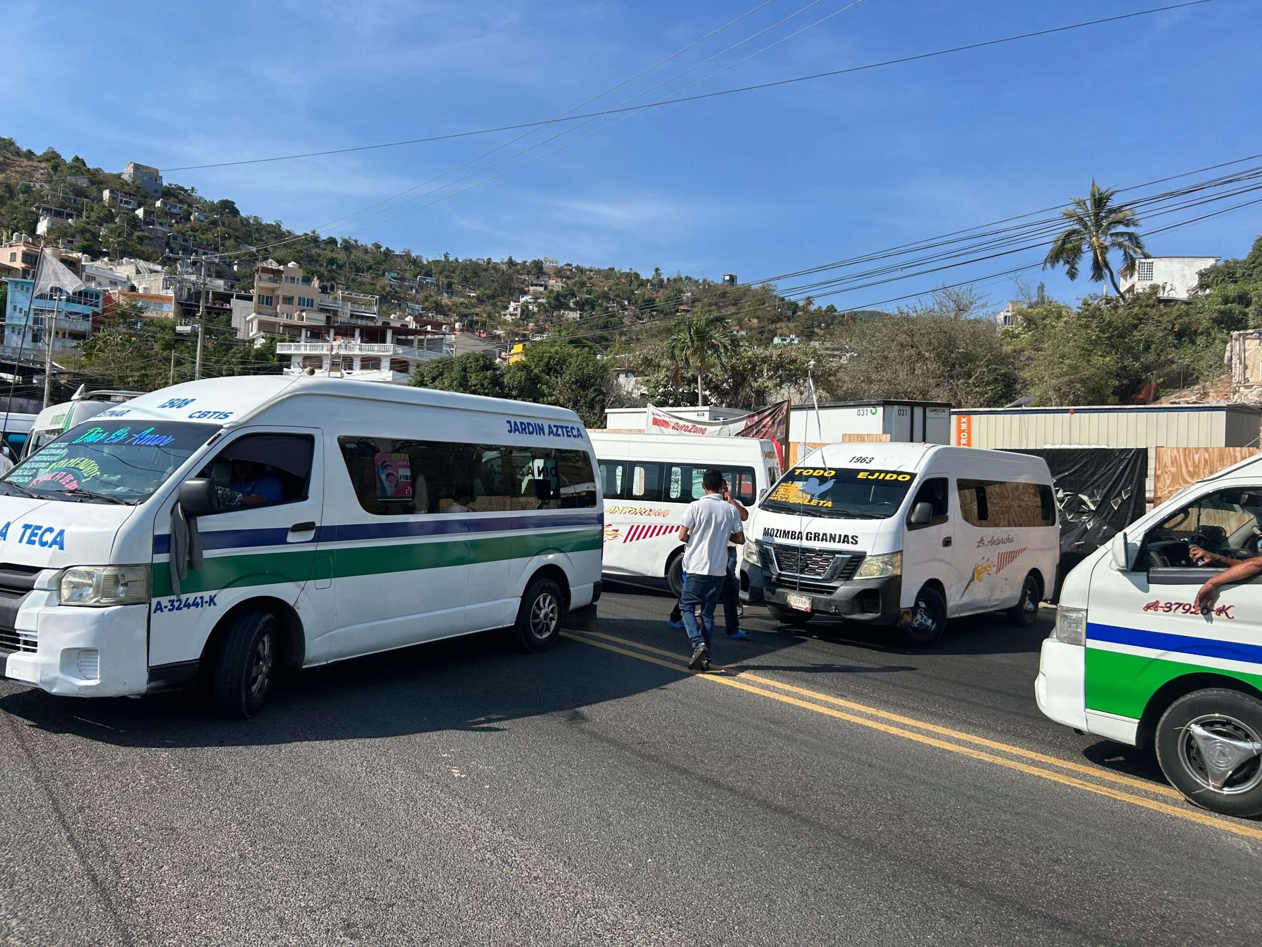 En la tarde de este miércoles 26 de marzo del 2025, transportistas propietarios y chóferes de camionetas Urvans, del servicio público de pasajeros de la zona Poniente de Acapulco, Guerrero, bloquearon la Calzada Pie de la Cuesta, a la altura de Mozimba, exigiendo seguridad.