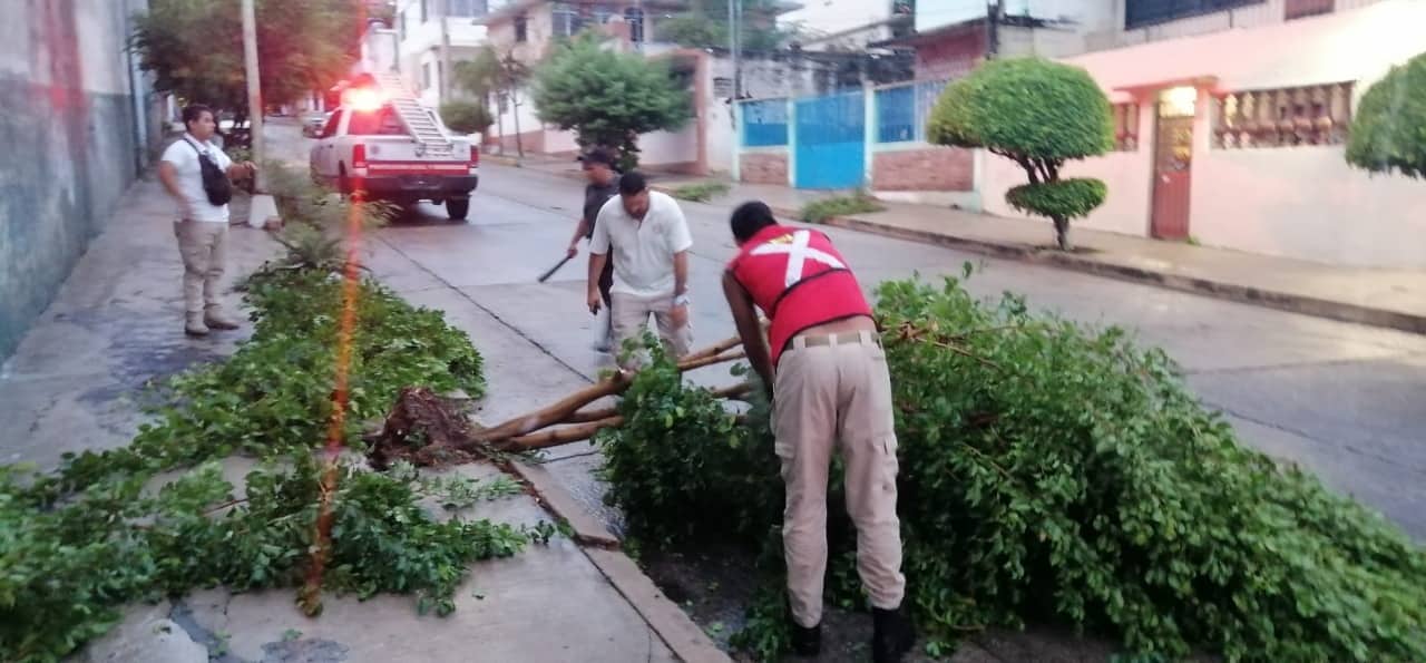 En las últimas horas la Coordinación de Protección Civil y Bomberos ha trabajado de manera intensa en colaboración con la Coordinación de Servicios Públicos Municipales, a cargo de Juan Carlos Manrique García, para atender los llamados de auxilio de la población por afectaciones de árboles caídos en las Colonias Cuauhtémoc, Bellavista, Palomares, Jardín Palmas, así como en el Plantel 7 del Colegio de Bachilleres de la colonia Santa Cecilia.