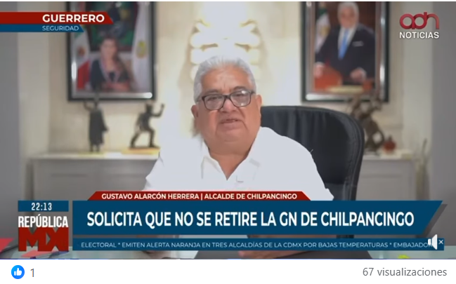 En entrevista con Manuel López San Martín, conductor del noticiero estelar de ADN Noticias, el presidente municipal de Chilpancingo, Dr. Gustavo Alarcón Herrera, hizo un llamado directo al Gobierno Federal y al Gobierno del Estado para que continúe la presencia de fuerzas federales y estatales y se mantenga la coordinación en materia de seguridad en la capital de Guerrero.