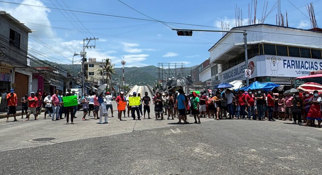 Acapulco, Gro., a 31 de agosto de 2025.- Por segundo día consecutivo,  comerciantes del Mercado Central de Acapulco, bloquean calles adyacentes a ese centro de abasto, refieren que el operativo realizado por fuerzas federales -al parecer concluyó con la detención de 7 presuntos “cobra cuotas”, porque aún no hay datos oficiales-, fue de manera violenta, señalan a los elementos de seguridad de apoderase de cosas en los lugares que entraron.