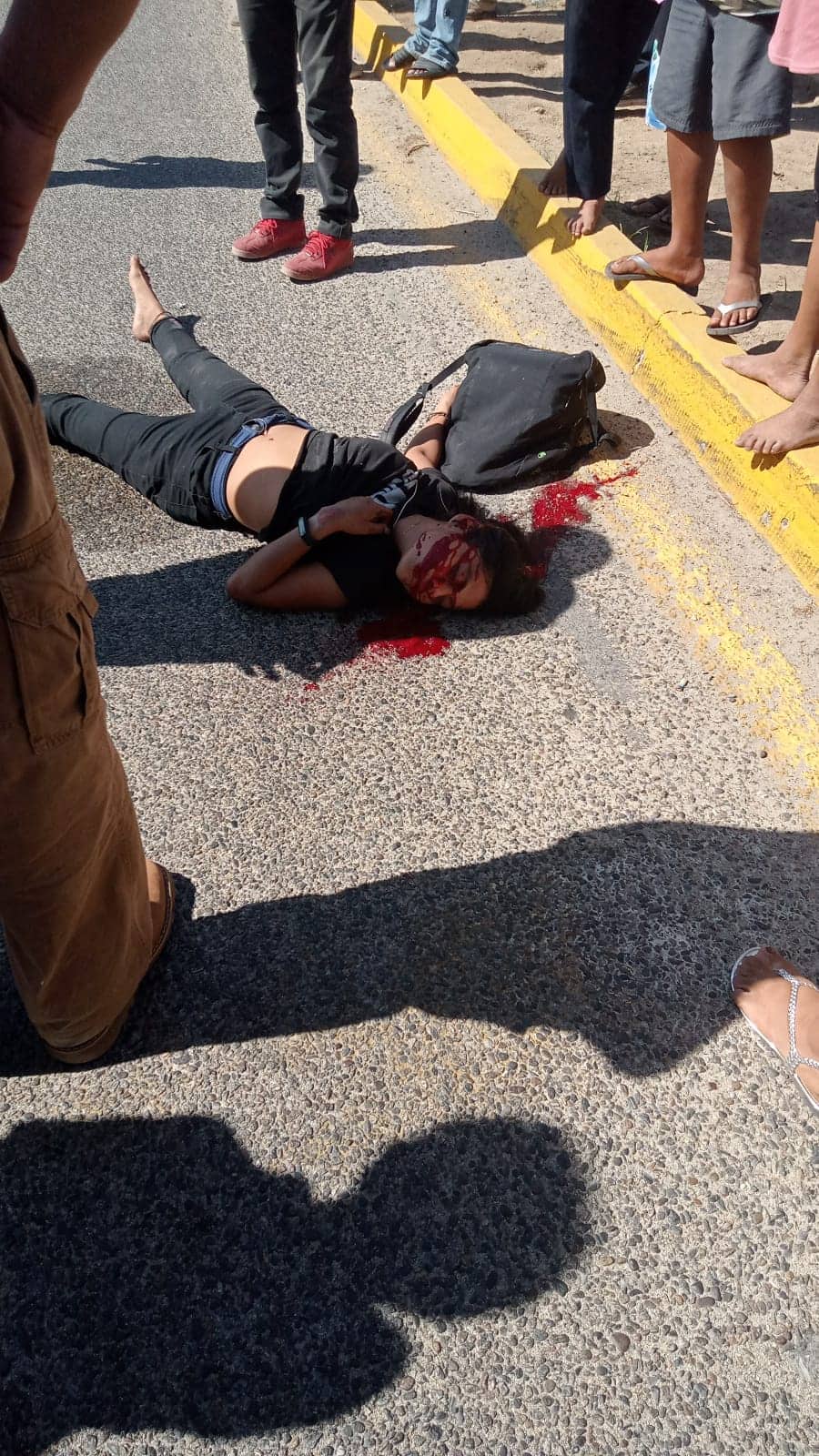 La lesionada no ha sido identificada y fue trasladada inconsciente de emergencia al hospital general Doctor Juventino Rodríguez García, debido a que perdió el conocimiento al impactar su cabeza contra el pavimento al derrapar en su moto, por lo que urge localizar a sus familiares para que tomen decisiones en torno a su salud.