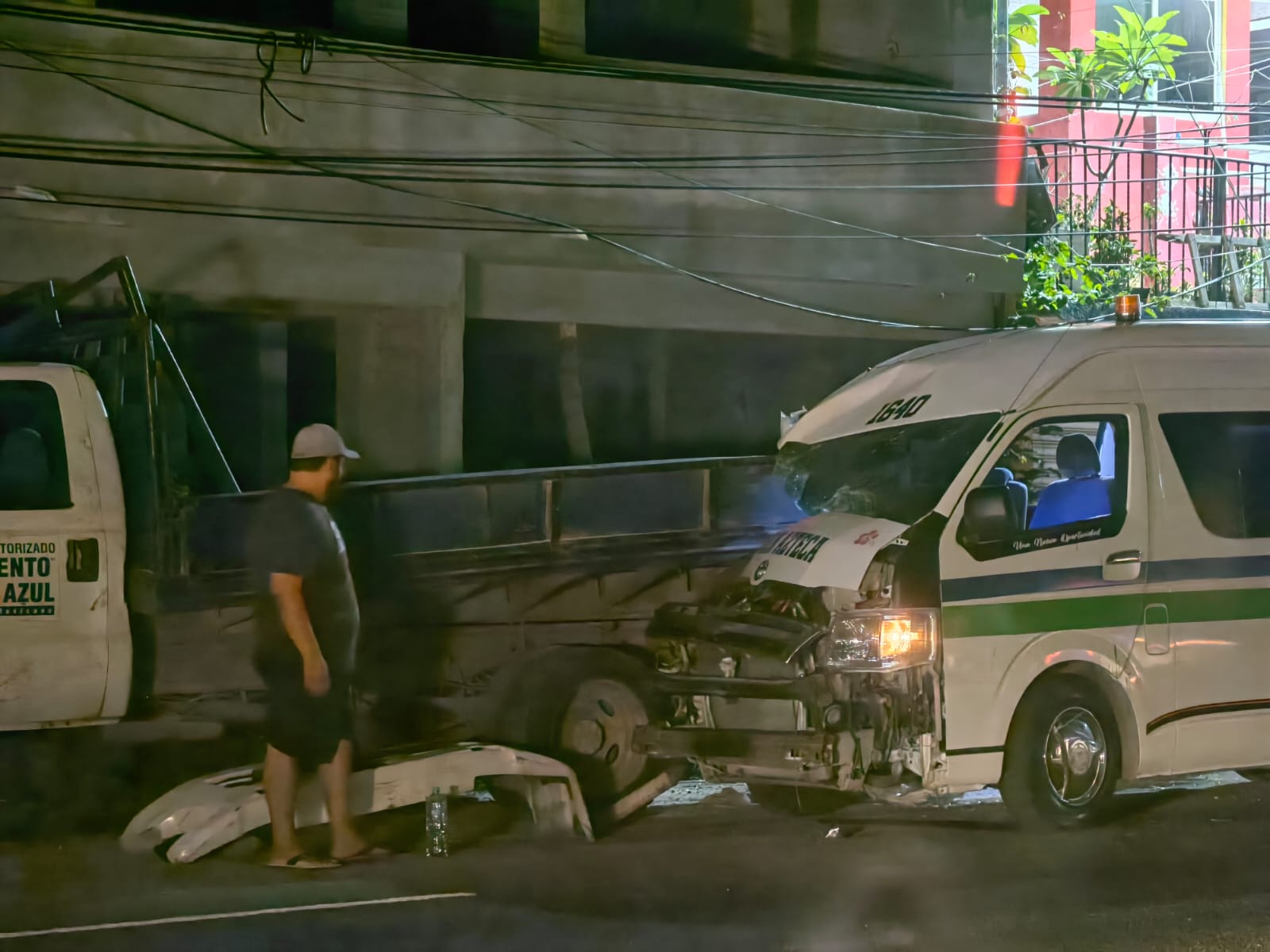 Urvan de la ruta Jardín Azteca se impacta contra camioneta materialista estacionada, hay varios lesionados